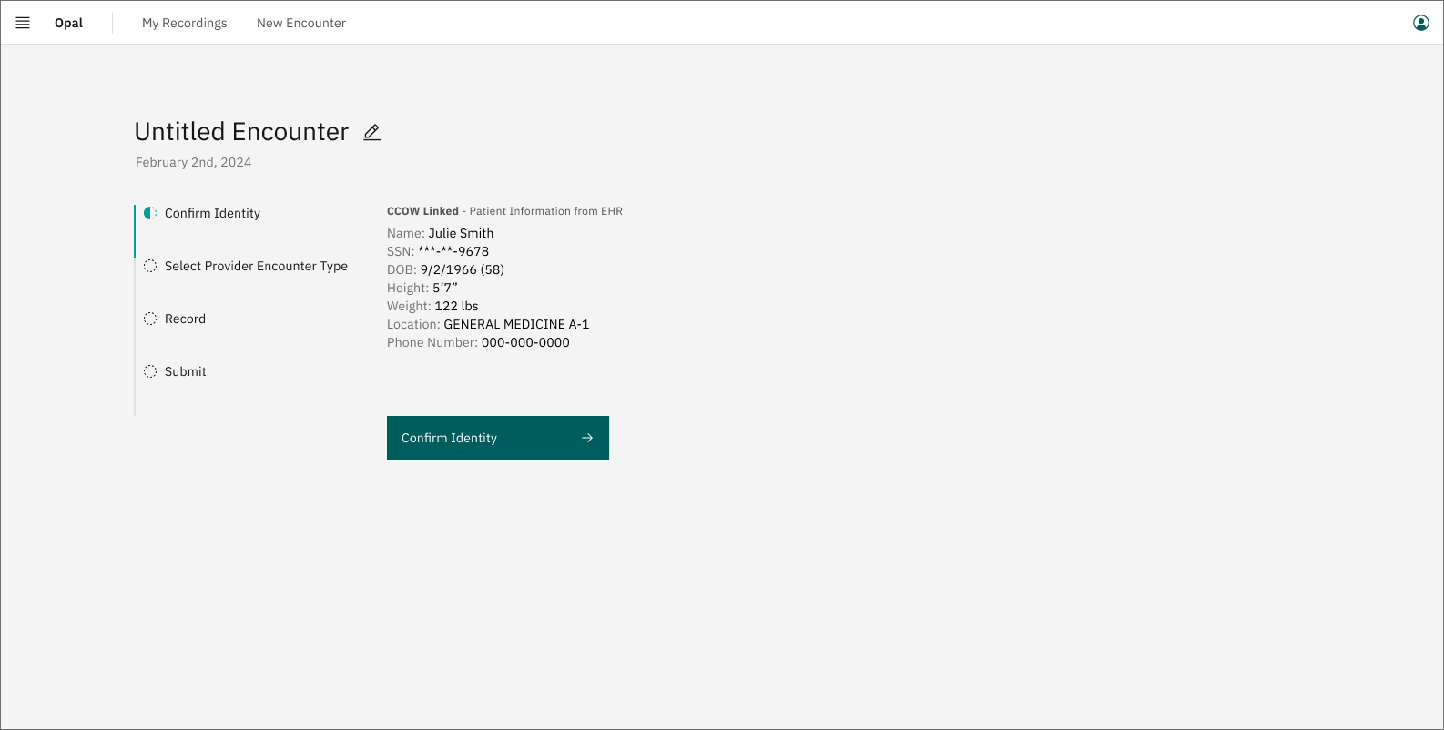 Patient encounter recording flow
