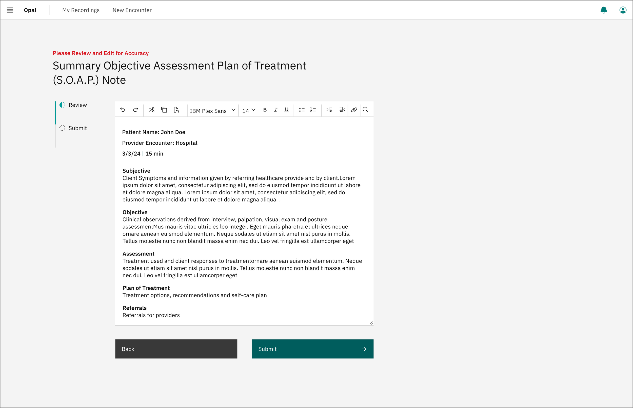 Providers must review and edit the system generated encounter notes to keep the human in the loop and ensure accuracy of critical patient information.