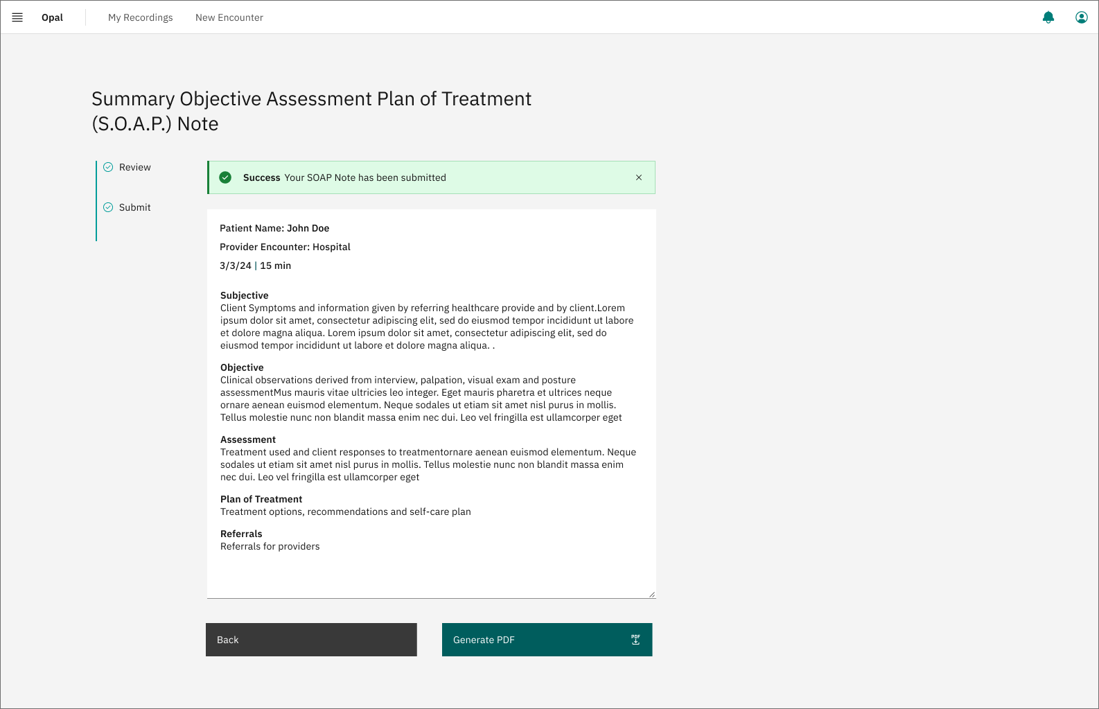 Provider reviews, edits and submits notes.