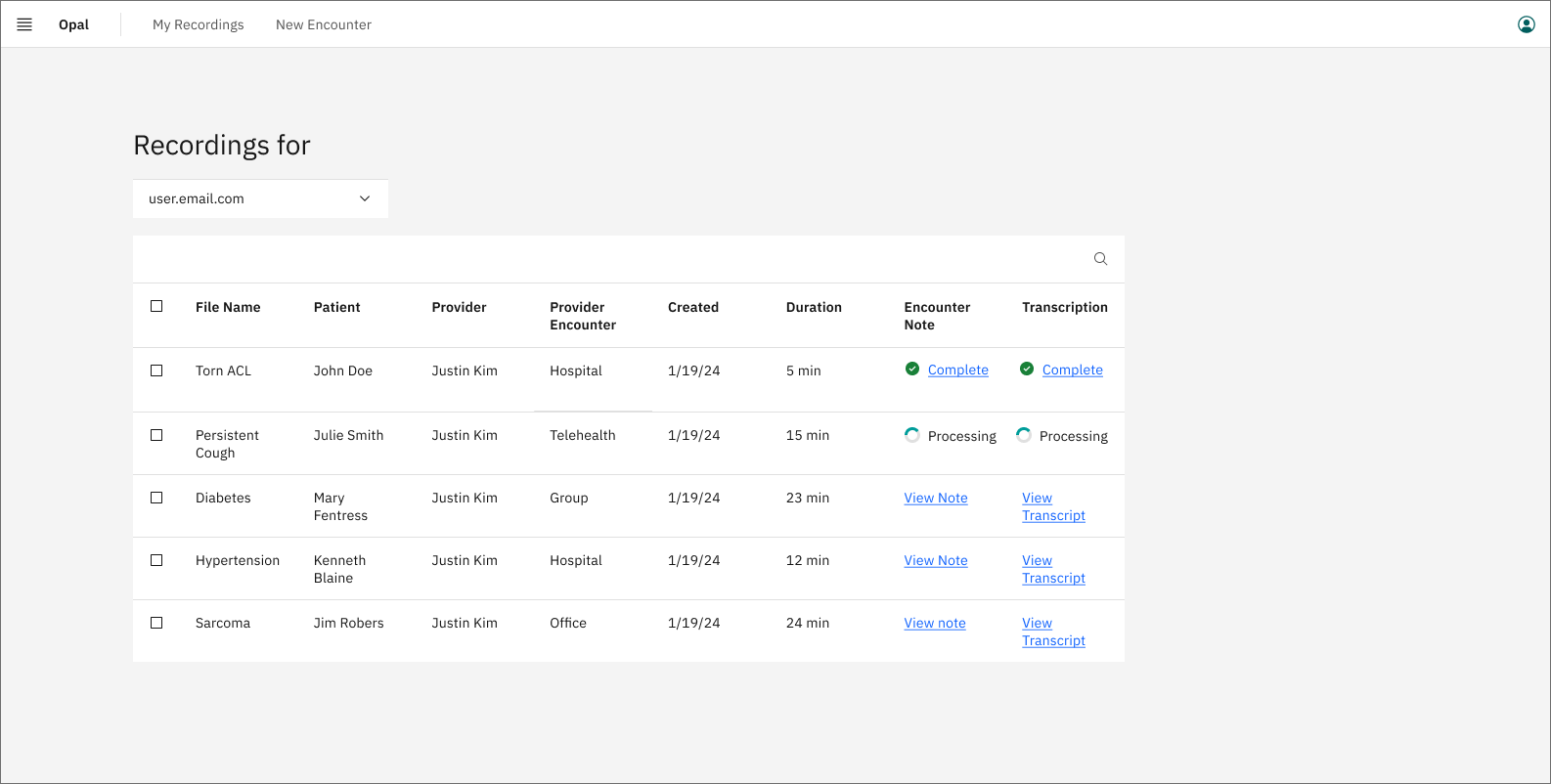Provider sees all of their patient encounter recordings
