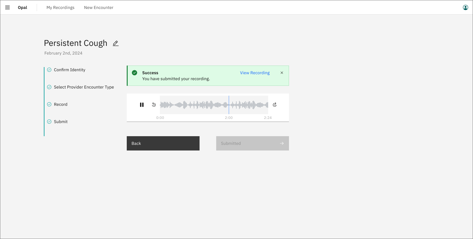 Success confirmation and link to view recordings page